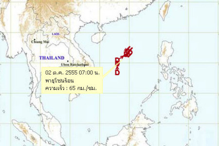 กรมอุตุนิยมวิทยา ออกประกาศเรื่อง "พายุ “เกมี” (GAEMI)" ฉบับที่ 4 ลงวันที่ 2 ต.ค. โดยระบุว่า เมื่อเวลา 04.00 น. วันที่ 2 ต.ค. พายุโซนร้อน “เกมี” (GAEMI) ที่ทวีกำลังแรงขึ้นจากพายุดีเปรสชันบริเวณทะเลจีนใต้ตอนกลาง โดยมีศูนย์กลางอยู่ห่างประมาณ 700 กิโลเมตร ทางตะวันออกของเมืองดานัง ประเทศเวียดนาม หรือที่ ละติจูด 17.0 องศาเหนือ และ ลองจิจูด 114.8 องศาตะวันออก มีความเร็วสูงสุดใกล้ศูนย์กลางประมาณ 65 กม./ชม. พายุนี้เกือบจะไม่เคลื่อนที่ และในช่วงวันที่ 2-3 ต.ค. 2555 ยังไม่มีผลกระทบโดยตรงต่อประเทศไทย