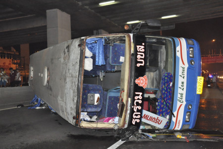 รถทัวร์อุบลฯ-กทม.คว่ำเจ็บ25ราย
