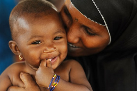 "มานิราทู มหามาดู" ทารกวัย 6 เดือน ยิ้มร่า เมื่อคุณแม่ ฮับสทู ซาลู อุ้มขึ้นหลังจากเด็กน้อยได้รับการตรวจสภาวะโภชนาการที่ศูนย์ตรวจสุขภาพในเมืองหลวงของประเทศไนเจอร์ ซึ่งการตรวจการเจริญเติบโตของเด็กจะช่วยป้องกันภาวะขาดสารอาหารและโรคภัยอื่นๆ รวมถึงช่วยให้เด็กได้รับการรักษาอย่างรวดเร็วทันที หากมีการตรวจพบความผิดปกติแต่เนิ่นๆ