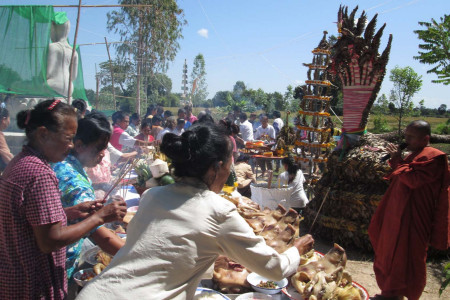 ชาวศรีสะเกษพากันไปกราบไหว้พญานาคที่สร้างขึ้นจากใบตองที่สวนพุทธธรรมนำไทยพาใจเป็นสุขฯ