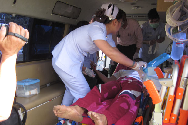ขณะเดียวกันเมื่อเวลา 14.40 น.วันเดียวกัน พ.ต.อ. เดชา คำเกิด ผู้กำกับการตำรวจตระเวนชายแดนที่ 21 ได้นำ ฮ.ไปรับผู้บาดเจ็บ จากโรงพยาบาลบัวเชด มารับการรักษาที่โรงพยาบาลสุรินทร์อย่างเร่งด่วนแล้ว ขณะนี้อาการปลอดภัย