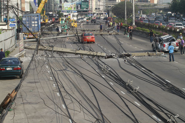 กองบังคับการตำรวจจราจรแจ้งว่า เกิดอุบัติเหตุ รถเครนเกี่ยวเสาไฟฟ้าล้มกว่า 33 ต้น บริเวณถนนพระรามที่ 3 ขาเข้า จาก แยกนางลิ้นจี่ มุ่งหน้า 5 แยก ณ ระนอง ขวางทุกช่องทางการจราจร รวมทั้ง สะพานต่างระดับ วัดช่องลม ทำให้รถที่วิ่งตามมาเบรกไม่ทัน วิ่งชน รถเสียหาย 5 คัน มีผู้ได้รับบาดเจ็บ 4ราย
