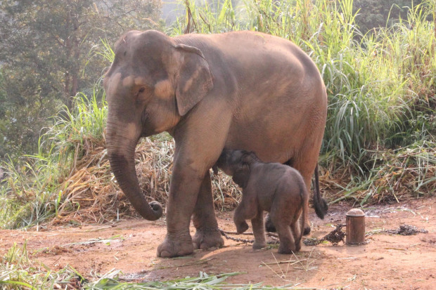 ช้างของกลางกาญจนบุรีที่ศูนย์อนุรักษ์ช้างไทยลำปางตกลูกรับวันเด็กแห่งชาติ