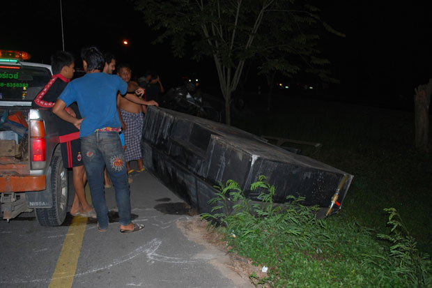 กระบะขนน้ำมันเถื่อนซิ่งแหกโค้งพัทลุง