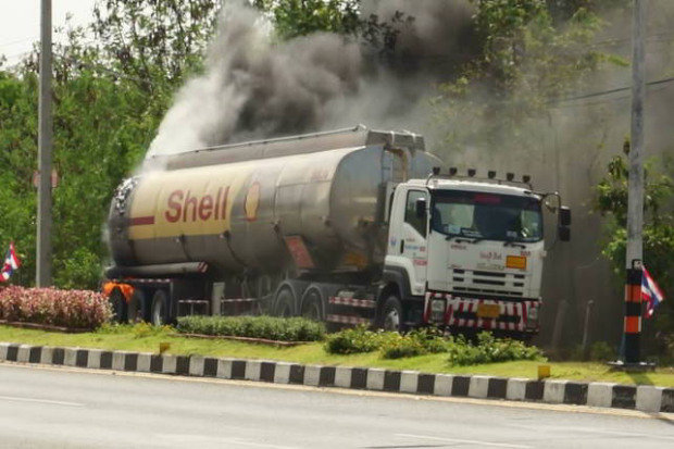 ระทึก!ไฟไหม้รถพ่วงบรรทุกน้ำมัน