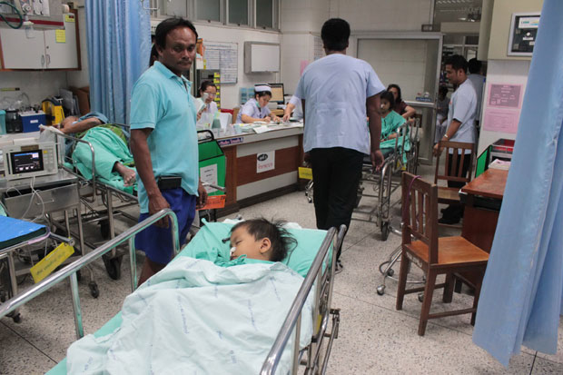 ทั้งนี้ พบนายเสถียร พรมสังข์ อายุ 32 ปี ผู้เป็นพ่อ พร้อมด้วยลูกทั้ง 3 คน คือ ด.ช.วทัญญู หรือน้องก้าน อายุ 6 ขวบ นร.ชั้นอนุบาล 3 ร.ร.วัดสาริการม ด.ญ.บุญวัฒน์ หรือน้องกิ่ง อายุ 4 ขวบ นร.เตรียมอนุบาล 3 ร.ร.วัดคลองน้ำเจ็ด โดยทั้ง 3 คนแพทย์ได้ล้างท้องและปฐมพยาบาลจนอาการปลอดภัยแล้ว ส่วน ด.ญ.ภาศกร หรือน้องเกล้า อายุ 3 ขวบ มีอาการหนักกว่าเพื่อน แพทย์ได้เร่งช่วยเหลือจนพ้นขีดอันตรายแล้ว แต่ยังมีอาการสะลืมสะลือและซึมอยู่