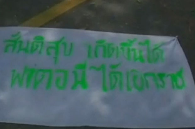 พบที่บริเวณเชิงสะพานบ้านกำปงปีแซมีป้ายผ้าสีขาวสีข้อความภาษาไทยด้วยสีเขียวสะท้อนแสง มีใจความว่า สันติสุขเกิดขึ้นได้ ฟาตอนีได้เอกราช โดยมีเชือกไนลอนผูกติดไว้ที่ปมผ้าทั้ง 2 ด้านผูกติดไว้กับกิ่งไม้และมีวัตถุต้องสงสัยคล้ายระเบิดวางอยู่ใต้ป้ายเจ้าหน้าที่ต้องเปิดเครื่องรบกวนสัญญาณโทรศัพท์มือถือและวิทยุสื่อสารก่อนเข้าตรวจสอบที่เกิดเหตุโดยเจ้าหน้าที่ได้ใช้อาวุธปืนยิงทำลายพบว่าเป็นระเบิดปลอมที่คนร้ายวางลวงไว้เจ้าหน้าที่จึงได้แกะป้ายข้อความลงมา