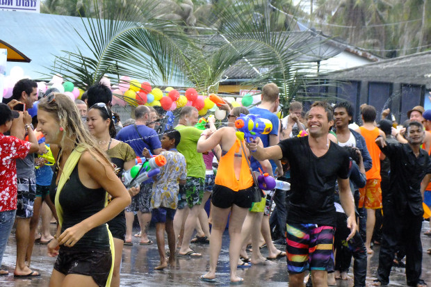 นักท่องเที่ยวต่างชาติ ร่วมเทศกาลสงกรานต์ สาดน้ำบนเกาะสมุนและเกาะพงันอย่างคึกคัก
