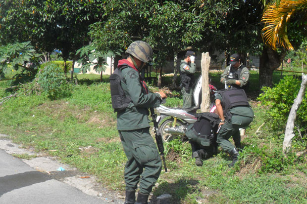พ.ต.ท.จิรสิทธิ์ ลอแม รอง ผกก.สภ.มายอ จ.ปัตตานี รับแจ้งเกิดเหตุยิงกัน บนถนนระหว่างตำบล บ้านคลองช้าง-บ้านปูกาสะแลแม ม.3 บ้านเขาวัง ต.ตรัง อ.มายอ รุดไปตรวจสอบพร้อมด้วย เจ้าหน้าที่ชุดเก็บกู้วัตถุระเบิด และตำรวจพิสูจน์หลักฐาน พบรถจักรยานยนต์ ซูซูกิ สแมช สีชมพู ทะเบียน กวฉ ยะลา 320 จอดอยู่บนเนินดิน ใกล้กันพบกองเลือด รองเท้าแตะ 1 คู่ และปลอกกระสุนปืนชนิด 9 มม. จำนวน 2 ปลอก เจ้าหน้าที่จึงได้เก็บเป็นหลักฐาน ส่วนคนถูกยิง ทราบชื่อว่า นายวาเย๊ะ ดอเลาะ อายุ 50 ปี อยู่บ้านเลขที่ 121 ม.4 ต.ประโด อ.มายอ มีบาดแผลถูกยิงด้วยอาวุธปืน 9 มม. เข้าที่เอวหลัง และต้นคอ เสียชีวิตระหว่างทาง ส่งโรงพยาบาลอำเภอมายอ