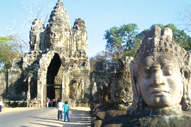 ในบ่ายวันนั้น เด็กเลี้ยงวัวยังเดินลัดเลาะไปมาตามเส้นทางขนาบด้วยเสานางเรียงพร้อมกับฝูงวัว เด็กๆ กำลังเล่นซ่อนหาในปราสาท บางคนง้างหนังสะติ๊กยิงนกป่าบนคบไม้ต้นตะแบกหน้าโคปุระตะวันตก นักแรมทางนั่งคุยกับสาวเขมรขายน้ำริมราวบันไดนาคราชด้านตะวันออก ทัวริสต์สนใจกับความเคร่งขรึมแห่งอารยธรรมมากกว่ารีบเข้ามาถ่ายรูปเป็นพยานการมาเยือนแล้วรีบไปเก็บภาพที่อื่นต่อด้วยอาการหืดหอบ ริมทางเข้านั้น ผมพบน็อมบันจ๊กเครื่องแกงเขียวชามละพันเรียลใส่ผักพูนจาน รสชาติอร่อยราวกับปรุงถวายพระกมรเต็งอัญสุริยะวรมัน และเติมได้ตามใจต้องการตราบใดที่น้ำยาขนมยังไม่พร่องจากจาน ผมแบ่งกินกับไกด์ผีคนละหลายยกท่ามกลางสายตาเอ็นดูและรอยยิ้มของแม่ค้าแสนสวยชาวบ้านแถวนั้น
