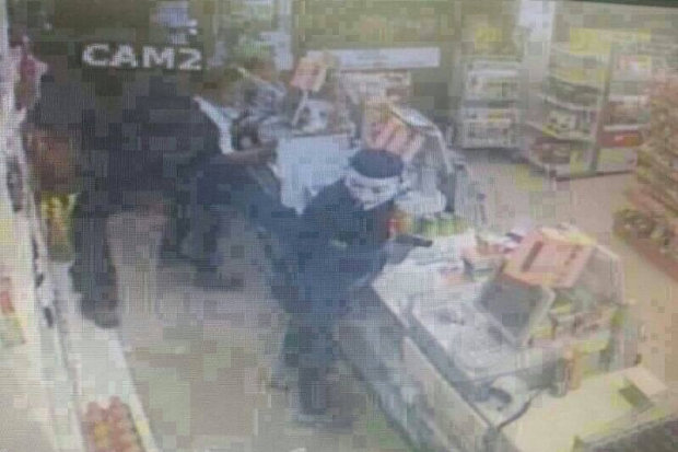 พนักงานหญิงให้การว่า คนร้ายเป็นชาย 1 คนเดินถืออาวุธปืน ใส่เสื้อแจ็คเก็ตสีเข้ม กางเกงยีนส์ขาเดฟสีดำ สวมถุงมือและสวมหมวกแก็ปสีเข้มโดยหันปีกหมวกไปด้านหลัง ปิดบังใบหน้าด้วยการใส่หน้ากากสีขาว เข้ามาหยุดด้านหน้าเคาน์เตอร์พร้อมหันปากกระบอกปืนมาทางตน จากนั้นมีชายอีกคนเดินตามเข้ามาแต่งกายลักษณะเหมือนกันกระโดดข้ามเคาน์เตอร์ แล้วเอื้อมไปหยิบสุราต่างประเทศไปจำนวน 3 ขวด พร้อมกวาดเงินสดในเคาน์เตอร์ไป 1,592 บาท ก่อนทั้งคู่จะรีบวิ่งออกไป