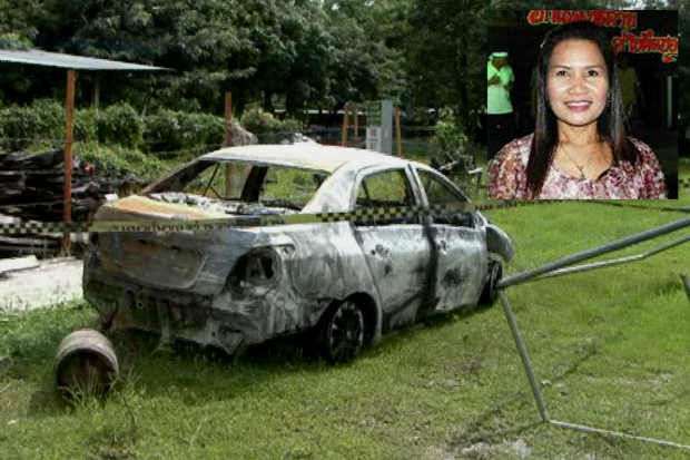 เก๋งวีออสถูกเผากลางทุ่งคนขับสาวหายตัว