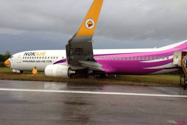 เครื่องบินโบอิ้ง747ของสายการบินนกแอร์ เกิดอุบัติเหตุลื่นไถลบนรันเวย์สนามบินตรัง ผู้โดยสาร 142 คนปลอดภัย