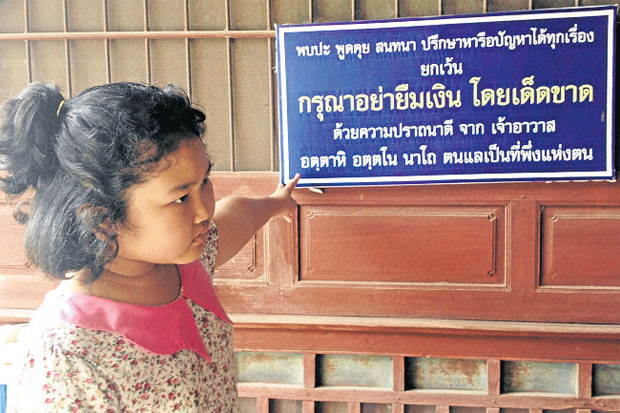 เพื่อตัดปัญหาที่เกิดขึ้นซ้ำซากพระมหาณรงค์ จึงติดป้ายไว้หน้ากุฏิพร้อมกับเขียนข้อความสะกิดเตือนใจญาติโยมชอบหลอกยืมเงินพระสงฆ์ว่า “พบปะ พูดคุย สนทนา ปรึกษาหารือปัญหาได้ทุกเรื่อง ยกเว้นเรื่องเดียว กรุณาอย่ายืมเงิน โดยเด็ดขาด ด้วยความปรารถนาดีจากเจ้าอาวาส”
