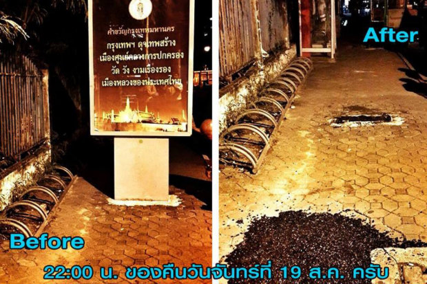 "สุขุมพันธุ์"สั่งรื้อป้ายคำขวัญ "กรุงเทพฯดุจเทพสร้าง" ขวางทางเท้า หลังเจอชาวเน็ตโวย พร้อมโชว์ภาพรื้อถอนเมื่อวันที่ 19 ส.ค.