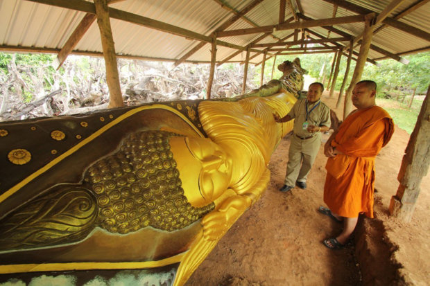 วัดนครพนมแกะสลักพุทธประวัติบนไม้ตะเคียนยักษ์