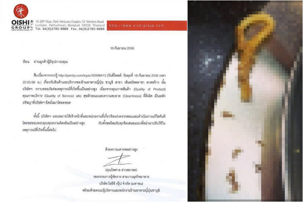 โออิชิขออภัยลูกค้าหลังเจอหนอนในร้าน