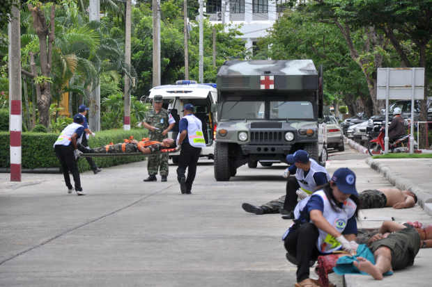 ที่โรงเรียนเสนารักษ์ กรมแพทย์ทหารบก สถาบันการแพทย์ฉุกเฉินแห่งชาติ (สพฉ.) ร่วมกับ โรงเรียนเสนารักษ์ กรมแพทย์ทหารบก จัดการฝึกภาคปฏิบัติในสถานการณ์เสมือนจริงที่มีผู้บาดเจ็บจำนวนมากในเหตุการณ์ระเบิด ซึ่งเป็นส่วนหนึ่งของโครงการการฝึกการช่วยเหลือผู้บาดเจ็บในที่เกิดเหตุในสถานการณ์ความรุนแรง โดยคัดเลือกบุคลากรทางการแพทย์ฉุกเฉิน ในพื้นที่สามจังหวัดชายแดนภาคใต้และพื้นที่เสี่ยงต่อการเกิดการปะทะ เช่น จังหวัดสุรินทร์ ให้มาเรียนรู้วิธีการในการปฏิบัติงานช่วยชีวิตฉุกเฉิน ในรูปแบบทางยุทธวิธี หรือ Tactical Combat Casualty Care (TCCC)