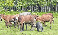 หมูเลี้ยงฝูงวัว