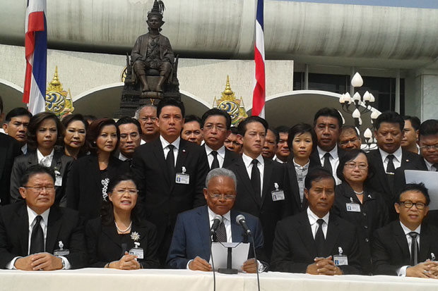 นายสุเทพ กล่าวต่อว่า ขณะนี้รองหัวหน้าพรรคภาคเหนือ ภาคอีสาน ภาคใต้ และภาคกทม. ของพรรค ลาออกจากการเป็นกรรมการบริหารพรรคแล้ว เพื่อให้การเคลื่อนไหวร่วมกับประชาชนไม่เกี่ยวข้องกับพรรค แต่จะยังไม่ขอลาออกจากการเป็นสส. เนื่องจากต้องใช้ความเป็นสมาชิกสภาผู้แทนราษฎรทำหน้าที่คัดค้านเรื่องนี้ โดยเฉพาะการอภิปรายในวาระ 2และวาระ 3