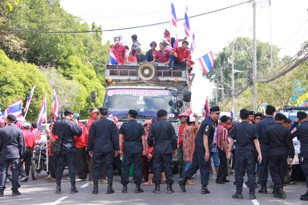 ทั้งนี้มีพล.ต.ต.สุรพล นิจชอบ รอง ผบช.ภ.4 พล.ต.ต.บุญลือ กอบางยาง ผบก.ภ.จว.อุดรธานี พ.ต.อ.โกวิท เจริญวัฒนศักดิ์ ผกก.สภ.เมืองอุดรธานี นำเจ้าหน้าที่ตำรวจชุดควบคุมฝูงชน 1 กองร้อย และ กำลังเจ้าหน้าที่ตำรวจทั้งในและนอกเครื่องแบบ กว่า 500 นาย และ นายสุทธินันท์ บุญมี รอง ผวจ.อุดรธานี สั่งการให้เจ้าหน้าที่อาสาสมัครรักษาดินแดน (อส.) กว่า 100 นาย เข้าดูแลรักษาปิดประตูทางเข้าศาลากลางทุกด้าน ไม่ให้บุคคลภายนอกเข้าไปภายในบริเวณศาลากลาง โดยกลุ่มต่อต้านนำดอกกุหลาบมามอบให้ เจ้าหน้าที่ที่รักษาการ์ด้านนอกรั้ว