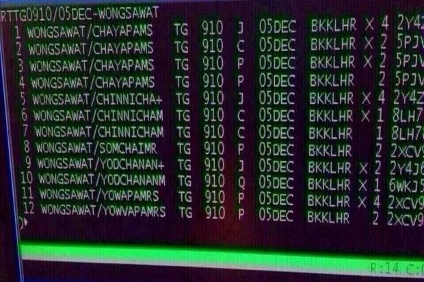 เมื่อวันที่ 3 ธ.ค.สังคมออนไลน์ได้มีการส่งต่อภาพหน้าจอคอมพิวเตอร์ที่แสดงการจองตั๋วเครื่องบินของสายการบินไทย เที่ยวบินที่ TG910 เดินทางจาก กรุงเทพฯ ไปกรุงลอนดอน ประเทศอังกฤษ จำนวน 12 ที่นั่งออกเดินทางคืนวันที่ 4 ธ.ค. ต่อเนื่องวันที่ 5 ธ.ค. โดยมีชื่อของ นายสมชาย วงศ์สวัสดิ์ อดีตนายกรัฐมนตรี นางเยาวภา วงศ์สวัสดิ์ ภรรยา และ บุตร 2 คน ซึ่งมีการล็อคชื่อผู้โดยสารสำหรับตระกูลวงศ์สวัสดิ์ไว้แค่ 4 ที่นั่ง ซึ่งยังเหลืออีก 8 ที่นั่งที่มีการล็อคเก้าอี้ไว้เช่นกัน แต่ไม่มีการใส่ชื่อผู้โดยสาร ซึ่งสามารถนำชื่อผู้ใดก็ได้มาใส่ลงไปเป็นผู้โดยสารในภายหลัง
