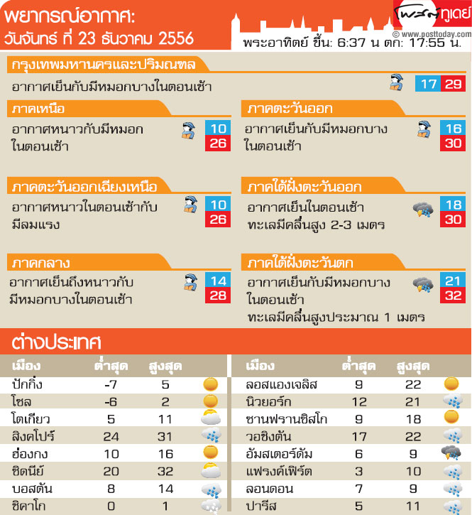 พยากรณ์อากาศประจำวันที่ 23 ธ.ค. 56