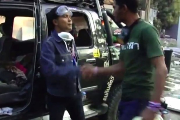 ชายคนดังกล่าวเปิดประตูรถคันดังกล่าว พร้อมชี้ให้ดูสิ่งของที่เสียหายภายในรถ โดยระบุว่า "มาดูได้เลยครับ ตำรวจออกมาทีเดียวเละเลยครับ ไม่ใช่มือที่สาม ตำรวจครับผม ผมทำจิตอาสาอยู่"