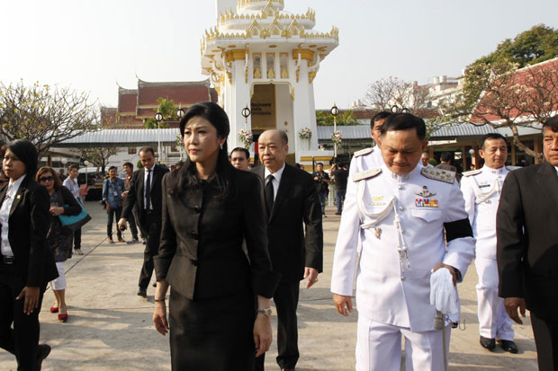 ยิ่งลักษณ์ ร่วมพิธีพระราชทานเพลิงศพ ด.ต.ณรงค์ ปิติสิทธิ์ ที่เสียชีวิตจากเหตุปะทะกับกลุ่มผู้ชุมนุมที่สนามกีฬาไทย-ญี่ปุ่น ที่วัดตรีทศเทพฯ