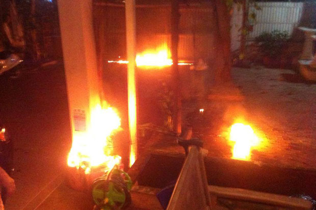 เบื้องต้นนายธีระ เจ้าของบ้าน สามารถออกมาดับเพลิงได้ทัน จึงไม่เสียหายมากนัก โดยนายธีระ ให้การว่า ก่อนเกิดเหตุตนเพิ่งกลับจากการจัดการรายเเละร่วมการชุมนุมได้ไม่นาน จึงยังไม่ได้เข้านอน เมื่อเห็นเเสงเพลิงหน้าบ้านจึงวิ่งเข้ามาดับทันที