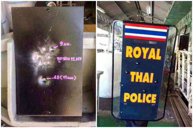 ทั้งนี้โล่แบบใหม่ได้ผ่านการทดสอบแล้วว่า โดยใช้อาวุธปืนยิงขนาด 9 มม. 11 มม. และลูกซองเบอร์ 12 ในระยะใกล้แค่ 5 เมตร ปรากฎว่าไม่ทะลุและถ้ายิงในระยะไกลสามารถป้องกันตำรวจได้สบายมาก แต่ไม่อาจกันอาวุธสงครามได้ ล่าสุดได้สั่งให้บริษัท บางระจัน ย่านอำเภอบางเสาธง จังหวัดสมุทรปราการ ให้เร่งจัดทำแล้ว หลังสาธิตให้ผบ.ตร.ดูประสิทธิภาพในที่ประชุม ศปก.ตร.