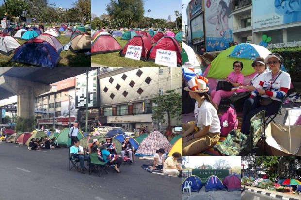 เต็นท์หลากสีถูกติดตั้งเป็นที่พักชั่วคราวในแทบทุกจุดที่มีการชุมนุมชัตดาวน์กทม.ของกลุ่มกปปส.แปลงสภาพเมืองกรุงกลายเป็นวนอุทยานแห่งชาติชั่วพริบตา