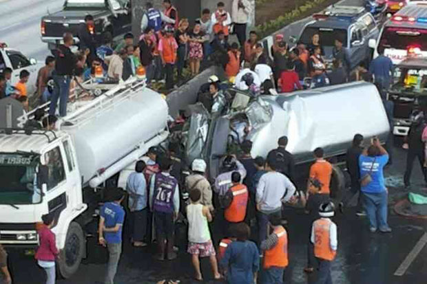 รถตู้โดยสารอัดท้ายรถ 6 ล้อคนขับดับ 1 ศพ-ผู้โดยสารเจ็บ 12 ราย