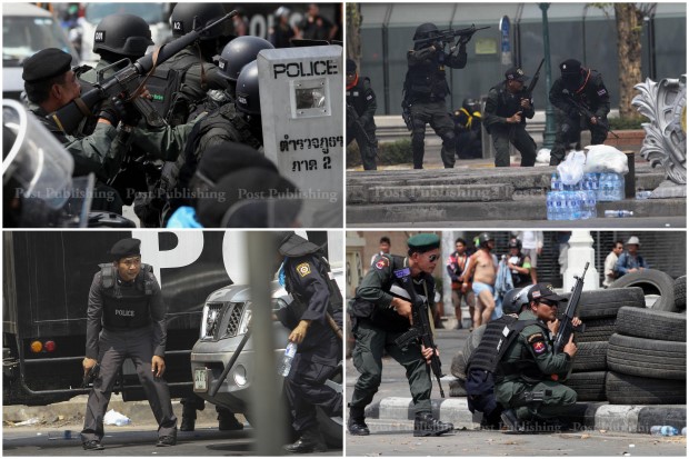 ภาพชุดตำรวจพร้อมปืนเอ็ม16ในเหตุปะทะผ่านฟ้า ที่ขัดแย้งกับคำแถลงของศรส.ที่ระบุว่าการขอคืนพื้นที่ตำรวจไม่มีการใช้อาวุธ