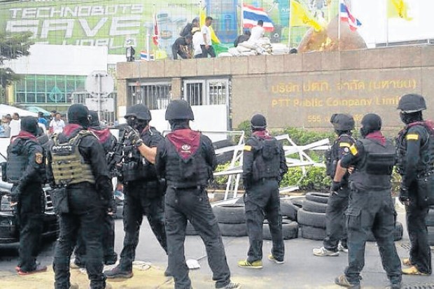 แต่เมื่อถามซ้ำถึงภาพจากพื้นที่ ปตท. โฆษกตำรวจก็ยอมรับว่า เพิ่งได้เห็นภาพที่หน้าโรงเรียนหอวัง และภาพนั้นน่าจะเป็นกลุ่มตำรวจอย่างชัดเจน แต่เข้ามาปฏิบัติหน้าที่เฉพาะกิจในลักษณะนอกเครื่องแบบ และไม่มีอะไรที่เกินเลยแน่นอน เพียงแต่น่าจะเป็นการคุมพื้นที่หลังมีการขอคืนพื้นที่จากกลุ่มผู้ชุมนุมที่หน้ากระทรวงพลังงาน
