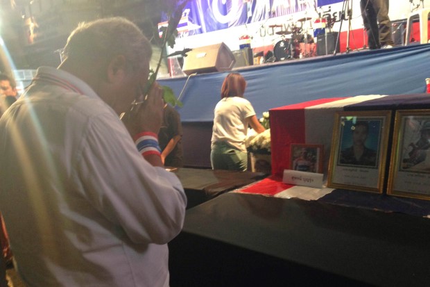 กปปส.จัดพิธีไว้อาลัยให้กับผู้ชุมนุมที่เสียชีวิตจากเหตุสลายการชุมนุมที่แยกผ่านฟ้า เมื่อวันที่ 18 ก.พ.