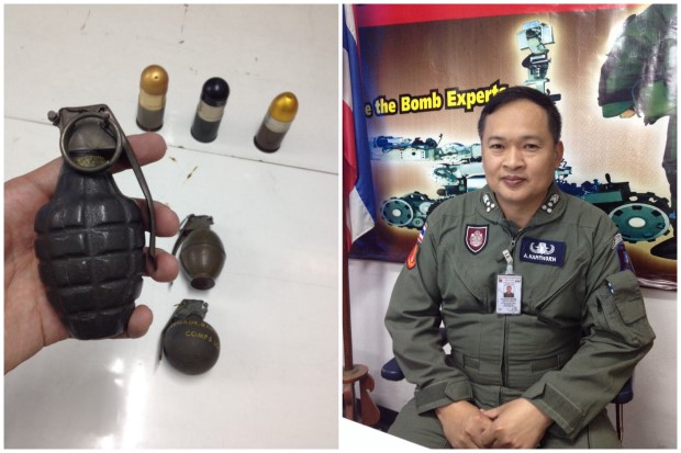 มือเก็บกู้วัตถุระเบิดจากหน่วยอีโอดี แจกแจงรายละเอียดแต่ละชนิดให้ฟังดังนี้
