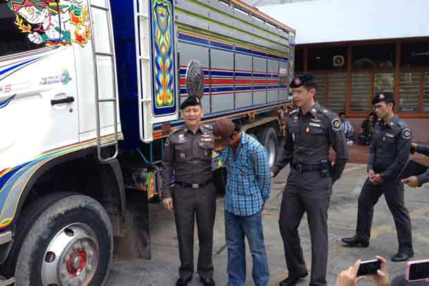 พล.ต.ต.พงษ์สิทธิ์ กล่าวว่า หลังจากมีคลิปภาพดังกล่าวปรากฏตามสื่อต่างๆ ตำรวจทางหลวงจึงได้มีการติดตามหาตัวผู้ขับรถบรรทุกคันดังกล่าว โดยสังเกตจากรถพ่วงตอนท้ายรถคันดังกล่าว ซึ่งมีจุดสังเกตทั้งหมด 6 จุด คือ 1.มีเสาผูกริบบิ้น ข้างซ้ายเเละข้างขวา 2. กระบะท้าย คานบนสุดช่องที่ 2 จากซ้ายมีรอยบุบเเตก บิดเบี้ยว 3. ติดป้าย "รถพ่วง" 4.ตำเเหน่งป้ายทะเบียน 5.ติดโลโก้บริษัท เเละ 6.ขนาดกันชนหลัง ซึ่งสะท้อนเเสง จากนั้นจึงได้ทำการสืบสวนเเละติดตาม กระทั่งทราบว่านายอังกูลย์เป็นผู้ขับขี่รถบรรทุกคันก่อเหตุ จึงทำการควบคุมตัวมาสอบสวน ซึ่งจากการตรวจสอบนายอังกูลย์ไม่ได้เสพยาเสพติด หรือมีข้อหาติดตัว เเต่อย่างไร