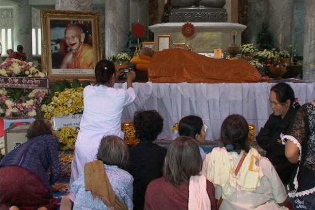 ศิษยานุศิษย์หลั่งไหลกราบศพหลวงปู่หงษ์แน่นวัด
