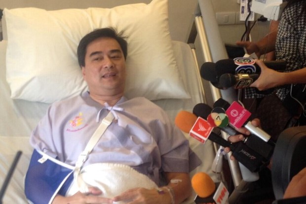 อภิสิทธิ์ประสบอุบัติเหตุลื่นล้มในบ้านพักซอยสุขุมวิท 31 กระดูกไหปลาร้าด้านซ้ายหักนอนพักอยู่รพ.รามาฯ