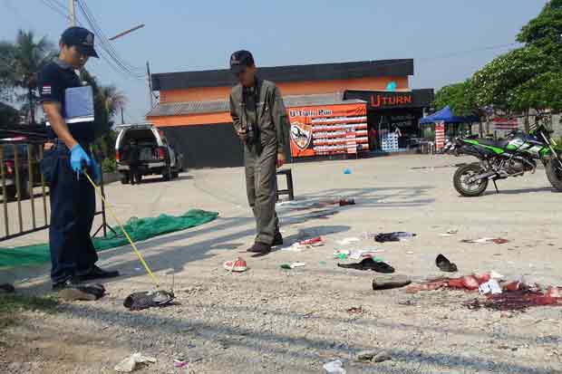 เชียงราย-ตำรวจตรวจที่เกิดเหตุหน้าผับเหตุวัยรุ่นปาระเบิดใส่กันมีผู้บาดเจ็บ 7 สาหัส 2