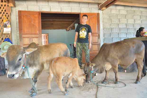 นอกจากนี้เมื่อประมาณ 2 เดือนที่ผ่านมา สิ่งที่ไม่น่าเชื่อก็เกิดขึ้นกับครอบครัวของตนอีก แม่วัวชื่อไหม ได้คลอดลูกออกมาเป็นวัวเพศผู้ มีร่างกายสมบูรณ์ทุกอย่าง แต่มีรูปร่างที่เล็กเหมือนกับวัวแคระคู่แฝด และมีพ่อตัวเดียวกันคือไอ้มุม ปัจจุบันลูกวัวอายุได้ 2 เดือนแล้ว แต่สูงเพียง 15 เซนติเมตร ลำตัวยาว 40 เซนติเมตร น้ำหนักประมาณ 10 กิโลกรัมเท่านั้น และหลังจากชาวบ้านทราบข่าวก็แห่เดินทางมาดู สร้างความฮือฮากันไปทั้งหมู่บ้าน สำหรับวัวแคระทั้ง 3 ตัวที่ตนมี ตนจะปล่อยให้กินหญ้าใกล้บ้านตามปกติ จากนั้นก็จะให้หัวอาหารเสริม เพื่อต้องการให้ลูกวัวได้รับอาหารที่เพียงพอ และหากชาวบ้านหรือนักท่องเที่ยวต้องการมาดูลูกวัวทั้ง 3 ตัว แต่ไม่รู้เส้นทาง สามารถโทรมาถามเส้นทางได้ที่หมายเลข โทรศัพท์ 080-6693168
