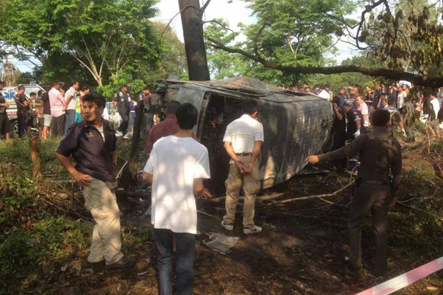 รถตู้ซิ่งหลุดโค้งตาย8ศพ-บัสชนจยย.ดับ1