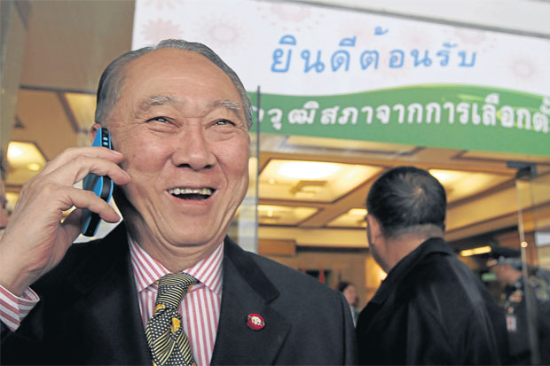 เป็นที่รู้กันดีอยู่ว่าในสุพรรณบุรี ท่านสะสมบารมีมาเยอะ หากท่านไม่ต่อต้านผมก็เอาตัวรอดได้ หากท่าน ต่อต้านผมก็ไม่ได้ ผมจึงไปขอบคุณ และผมยังบอกท่านด้วยนะว่า ท่านครับ ผมอยากเป็นประธานวุฒิฯ ท่านก็ตอบว่า เออ ดีนะ แต่ช่วยตัวเองนะ เพราะพี่หมดแรงแล้ว ท่านพูดมาอย่างนี้ ก็ไม่ตื๊อกัน และจริงๆ ผมคิดว่าหากท่านมาช่วยจริงๆ ผมก็ไม่ได้เป็นคนกลางอีก”