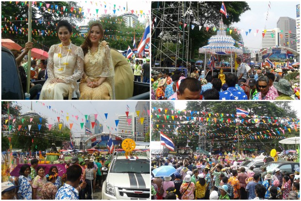เมื่อวันที่ 14 เม.ย.บรรยากาศการจัดงานสงกรานต์ภายใต้ชื่อ "มวลมหาประชาเบิกบาน" ของกลุ่มกปปส. ที่สวนลุมพินีในวันที่สอง ยังคงเป็นไปอย่างคึกคัก โดยช่วงเช้าได้มีการจัดกิจกรรมประกวดรถแห่พระจากมวลชนกปปส.ทั้ง 6 หมู่บ้าน คือ หมู่บ้านลาดพร้าว หมู่บ้านลุมพินี หมู่บ้านอโศก หมู่บ้านอนุสาวรีย์ฯ หมู่บ้านปทุมวัน และหมู่บ้านสีลม จากนั้นขบวนรถจะแห่รอบบริเวณสวนลุมพินี โดยรถจากแต่ละหมู่บ้านได้มีการประดับด้วยดอกไม้อย่างสวยงาม ขณะที่มวลชนจำนวนมากต่างเข้าร่วมกิจกรรมอย่างคึกคัก