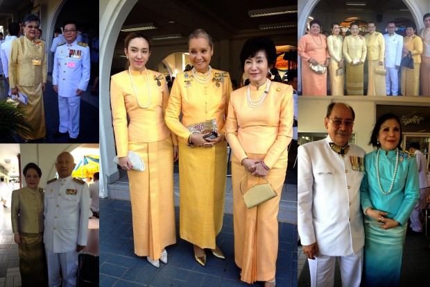 เมื่อวันที่ 5 พ.ค. ข้าราชการชั้นผู้ใหญ่ และราชสกุลสายต่างๆ ได้แต่งกายเครื่องแบบเต็มยศและชุดขาวประดับเหรียญ เฝ้าฯรับเสด็จฯพระบาทสมเด็จพระเจ้าอยู่หัว และพระบรมวงศานุวงศ์ ที่เสด็จฯประกอบพระราชพิธีฉัตรมงคล ณ ศาลาราชประชาสมาคม วังไกลกังวล อ.หัวหิน จ.ประจวบคีรีขันธ์