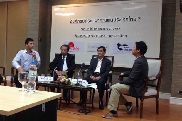 เมื่อวันที่ 12 พ.ค. ที่ศศนิเวศน์ จุฬาลงกรณ์มหาวิทยาลัย ศูนย์วิจัยข้อมูลการเมืองไทย จัดงานเสวนา “องค์กรอิสระ : ผ่าทางตันประเทศไทย?” โดยมีอดีตสมาชิกสภาร่างรัฐธรรมนูญ (สสร.) 2550, อดีตคณะกรรมการการเลือกตั้ง (กกต.) และ นักวิชาการ เข้าร่วมเสวนา