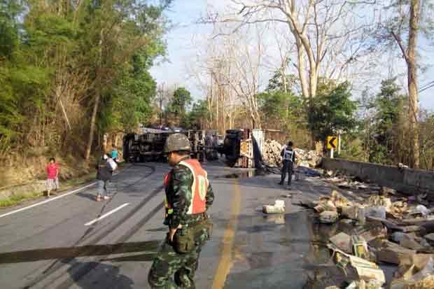 ก่อนหน้านี้ เจ้าหน้าที่ตำรวจ สภ.พะวอ อ.แม่สอด จ.ตาก รับแจ้งมีเหตุรถบรรทุกน้ำมันพืชพลิกคว่ำบริเวณโค้งร้านค้าหน่อไม้และของป่า ใก้ลศาลเจ้าพ่อพะวอ ต.พะวอ อ.แม่สอด และมีน้ำมันพืชที่ขวดแตกจำนวนมากไหล มายังพื้นถนนและรถบรรทุกยังขวางถนน ส่งผลให้การจราจรรถที่สัญจรผ่านไป-มาติดเป็นทางยาว จนท.ตำรวจ ได้ประสานศูนย์กู้ภัยให้นำรถยกและรถลากจูงมา ยกรถบรรทุกออกเป็นการด่วยเพราะขณะนี้ รถที่สัญจรผ่านเส้นทางดังกล่าวไม่สามารถเดินทางได้ ประกอบกับน้ำมันพืชที่บรรทุกมานั้นแตกเสียหายทำให้มีน้ำมันไหลออกมา อาจจะส่งผลทำให้ถนนลื่นจึงต้องีการเร่งระดม เจ้าหน้าที่มาเคลียร์เส้นทาง