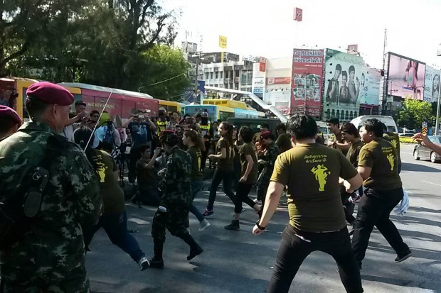 กลุ่มเยาวชนให้กำลังใจทหาร-ตร.ที่อนุสาวรีย์ชัยฯ