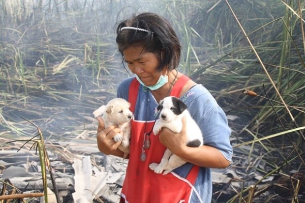 ชาวเน็ตร่วมชื่นชมแม่ค้าตลาดมีสุข อ.ชะอำ ฝ่ากองเพลิงช่วยลูกสุนัขจากเหตุเพลิงไหม้ป่ากก
